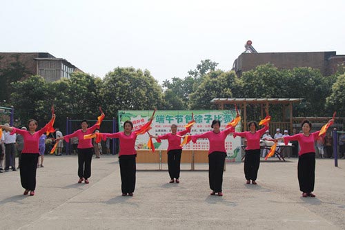 比赛开始前,五环花园舜华舞蹈团、骊园小区女子舞蹈队表演了精彩的开场舞。比赛开始后,社区居民踊跃报名、积极参赛。参赛人员挑粽叶、放糯米、扎线、包粽子,动作娴熟,有条不紊。比赛活动现场沉浸在一片欢声笑语中。