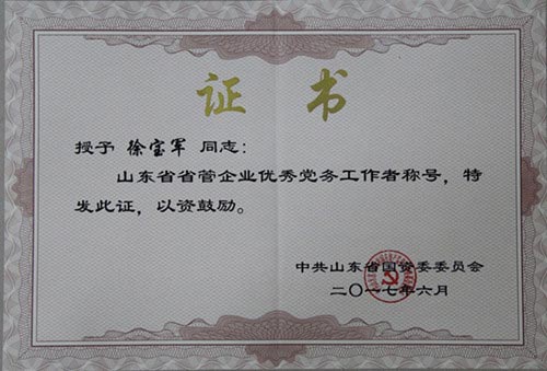 为隆重庆祝中国共产党建党96周年,进一步加强省管企业党建工作,更好地发挥各级党组织的战斗堡垒作用和广大党员的先锋模范作用,省国资委在“七一”前夕命名表彰了一批省管企业先进基层党组织、优秀共产党员和优秀党务工作者。我院院长助理、机关党支部书记徐宝军经过逐级推荐和审核考察,被评为省管企业“优秀党务工作者”。