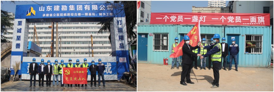 3月23日上午,集团公司党委副书记张方贵到山东省立医院病房综合楼基坑支护与降水工程项目现场,为“党员突击队”授旗。在授旗仪式上,张书记指出,该项目处于济南老城区、地质条件复杂,希望“党员突击队”的每名队员弘扬工匠精神,发挥先锋模范作用,勇于担当负责,带头攻坚克难,坚决克服施工现场条件差、技术工艺要求高的等困难和挑战,保质保量、安全高效地加快推进项目建设,争取把省立医院病房综合楼建设项目打造成国优工程。